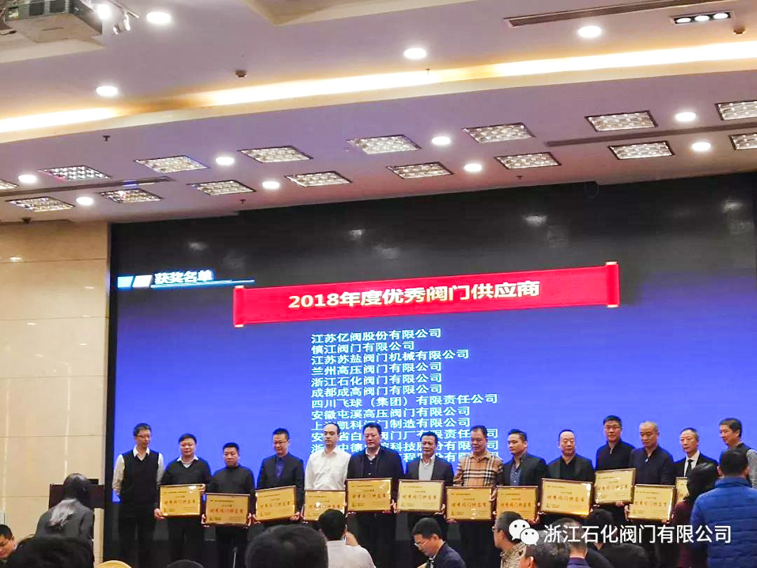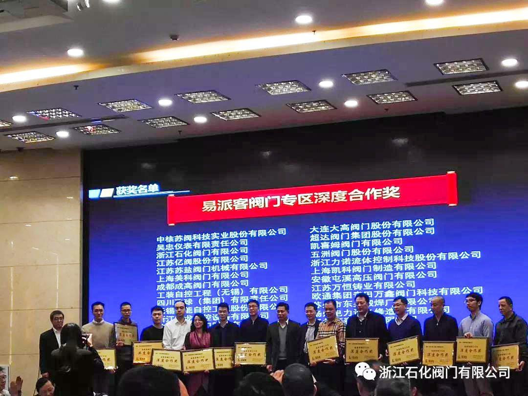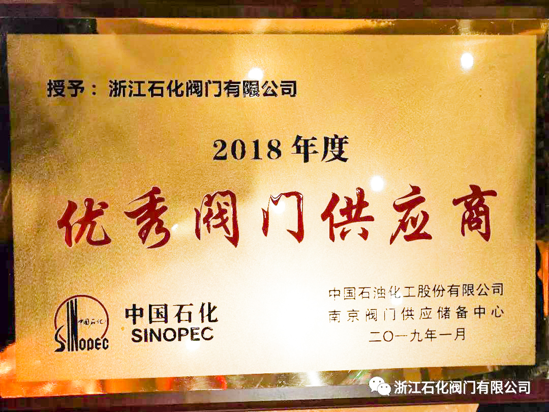 浙江石化閥門有限公司榮獲“2018年度中國石化優秀閥門供應商”、“易派客閥門專區深度合作獎”的兩項榮譽。